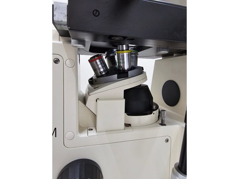 Microscópio invertido Biológico Marca Zeiss Modelo Axiovert 135M, com objetivas Planfluor 5x campo claro e 10xPh1, 20xPh2,40xPh2 contraste de fase, iluminação halógena de alta intensidade 12v 100w, sistema de troca de ampliação motorizado, revólver para objetivas quintuplo, charriot e platina com suporte universal para lâmina e câmara de uthermol.